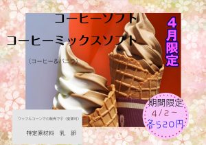 4月の限定ソフトはコーヒーソフトとコーヒーミックスソフト各520円です